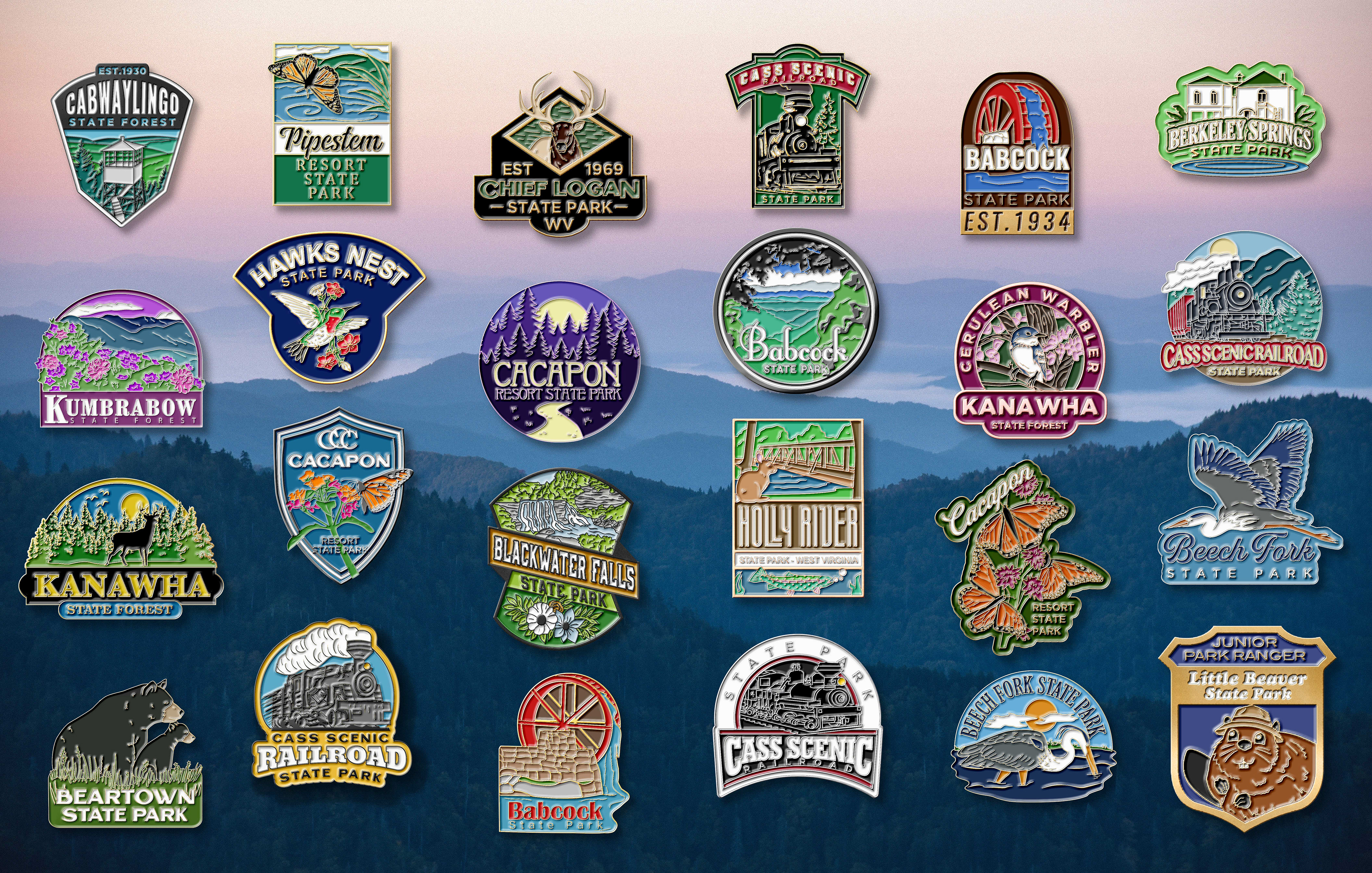 West Virginia oversees several gift shops for various parks, events, and programs in attempts to raise revenue when government funding is low. I have designed and illustrated various souvenirs to meet the many needs of these shops and events.